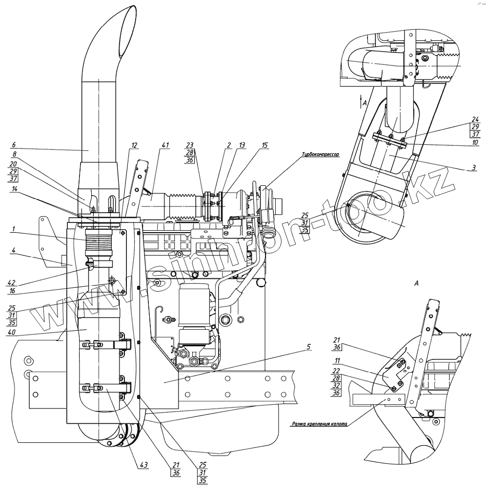 Каталог запасных частей к технике: МТЗ 1220.5. Установка глушителя