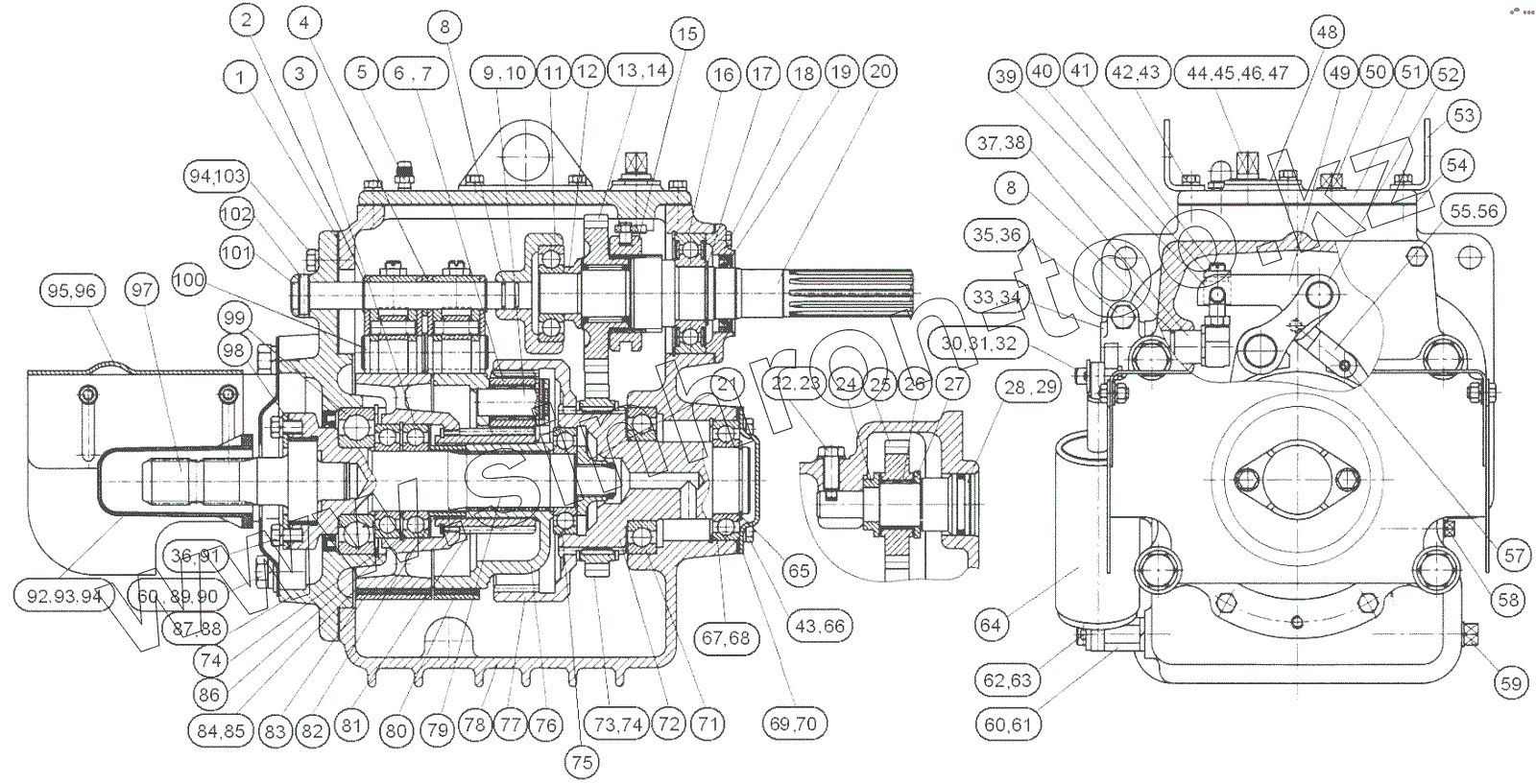 Каталог запасных частей к технике: МТЗ 1523.5. Редуктор переднего ВОМ