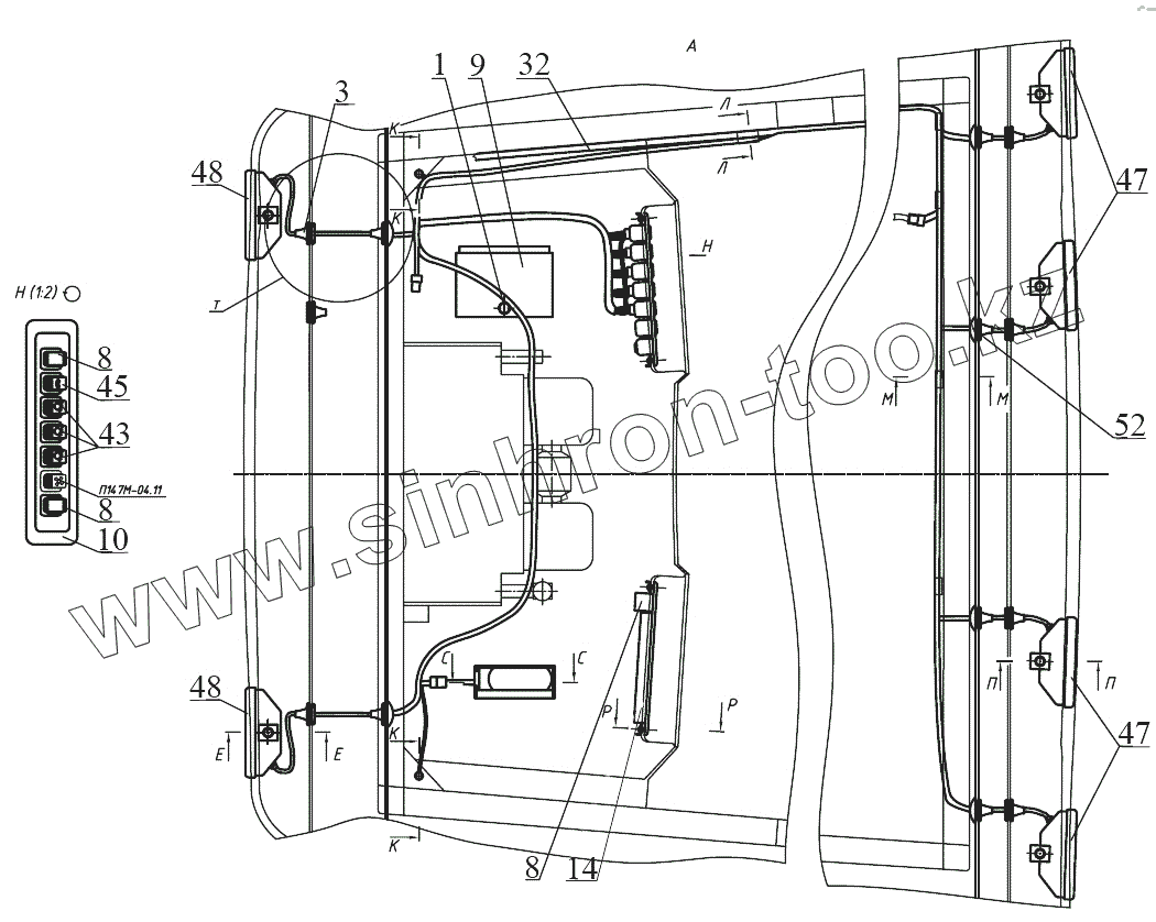 Каталог запасных частей к технике: МТЗ 1523.5. Установка фар рабочих