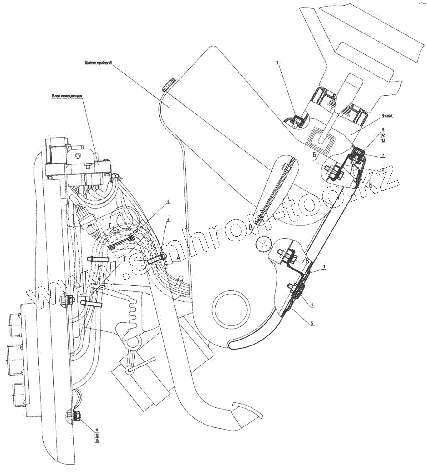 Каталог запасных частей к технике: МТЗ 1523.5. Установка щитка приборов