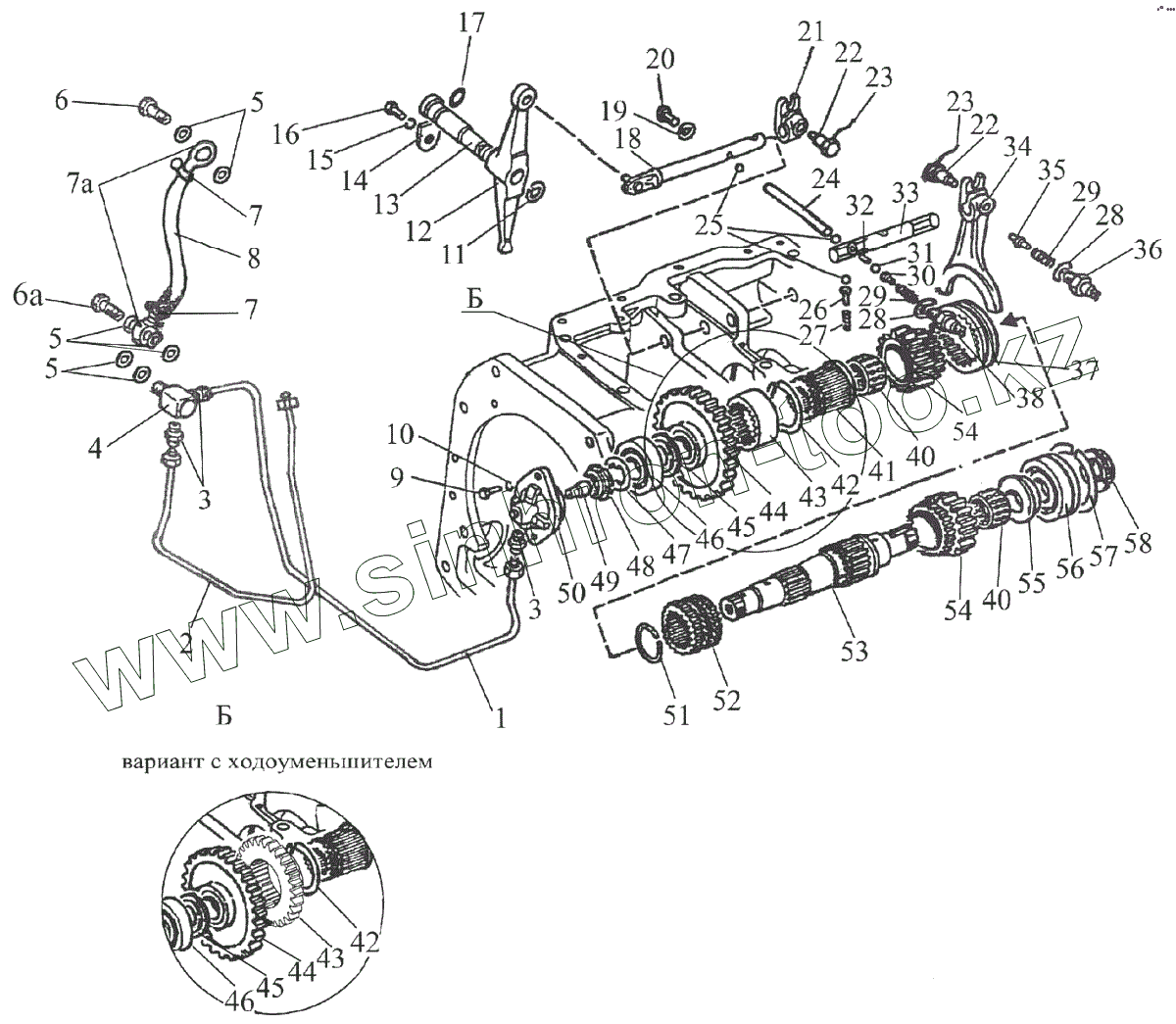 Каталог запасных частей к технике: МТЗ 1523.5. Вал пониженных передач и заднего хода