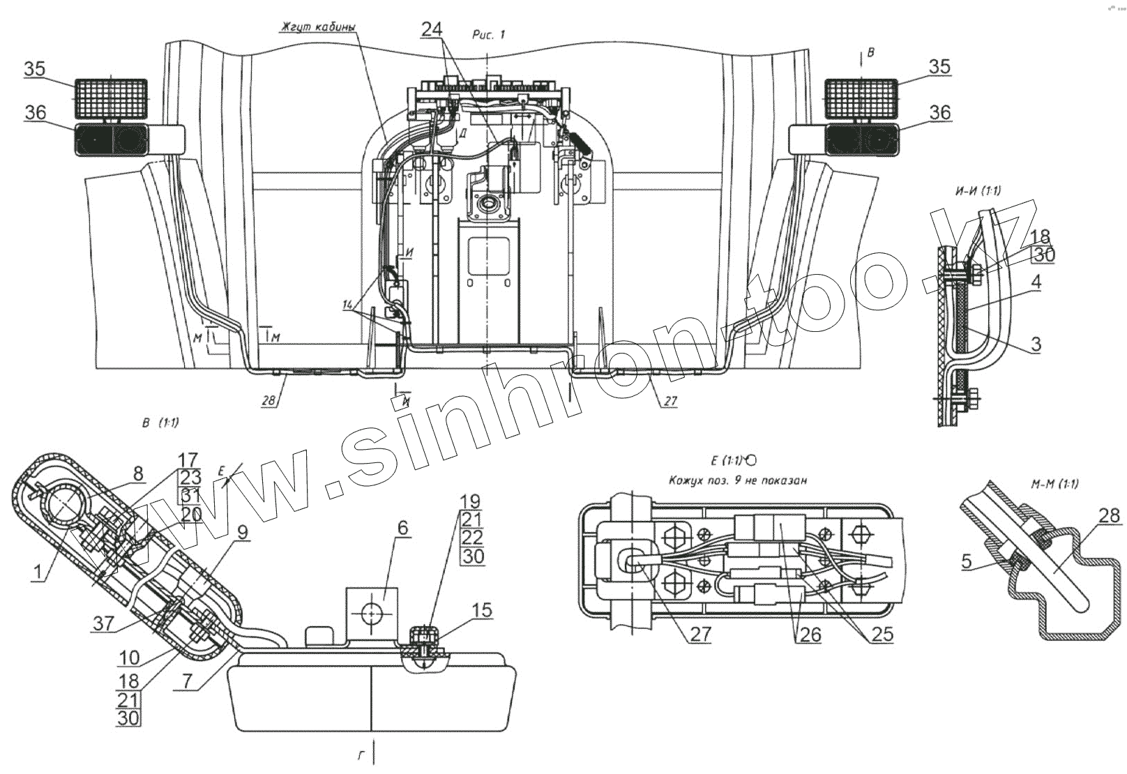 Каталог запасных частей к технике: МТЗ 1523.5 с ГМТ. Установка фонарей передних