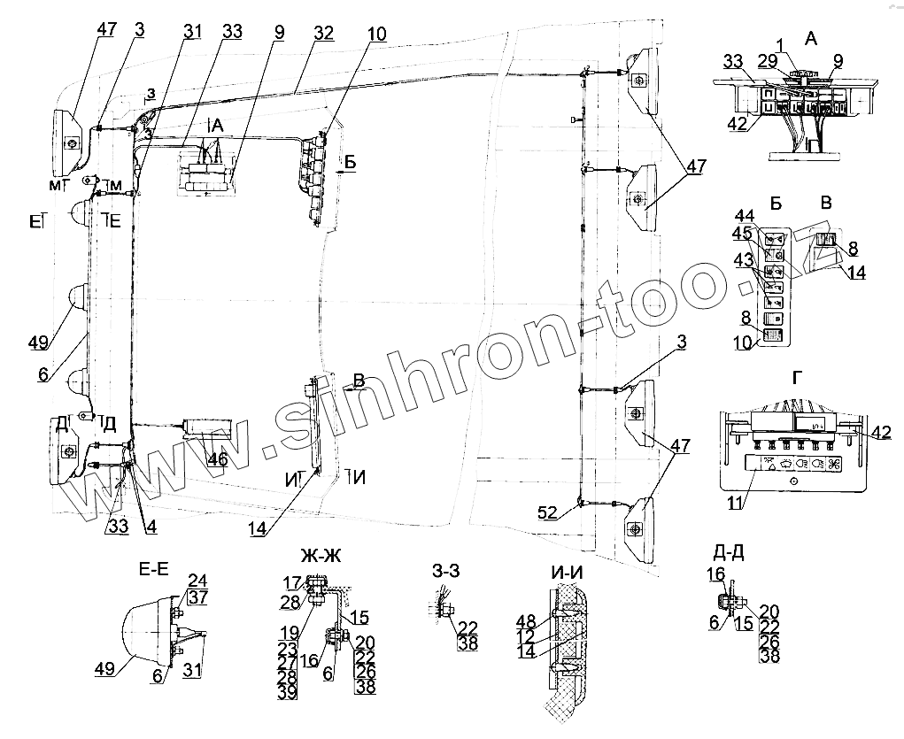 Каталог запасных частей к технике: МТЗ 2122.3/2122.4. Установка фар рабочих Беларус-2122.3
