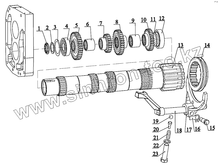 Каталог запасных частей к технике: МТЗ 2122.3/2122.4. Узел передач. Вал промежуточный