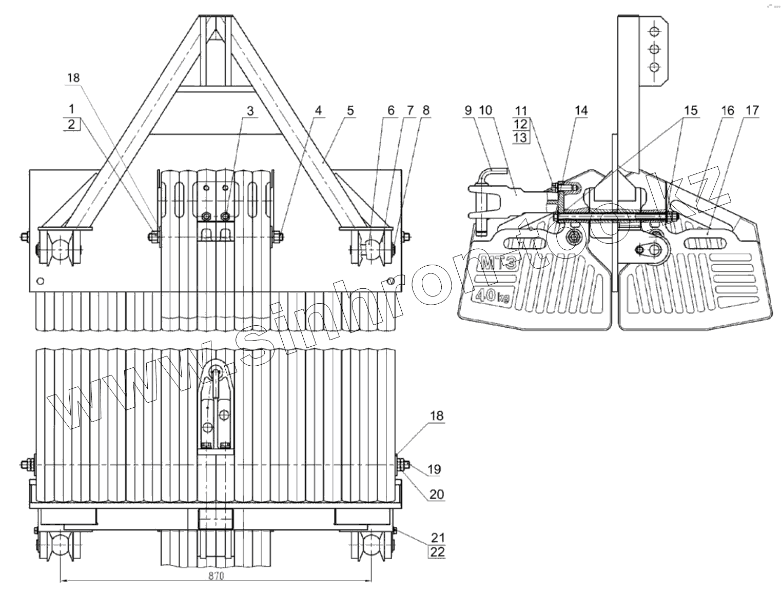 Каталог запасных частей к технике: МТЗ 3022ДЦ.1. Кронштейн с грузами