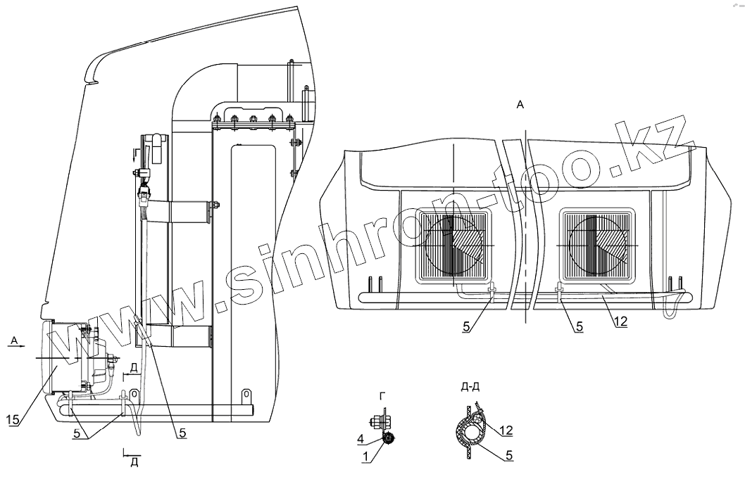 Установка отопителя-охладителя (Вариант А)