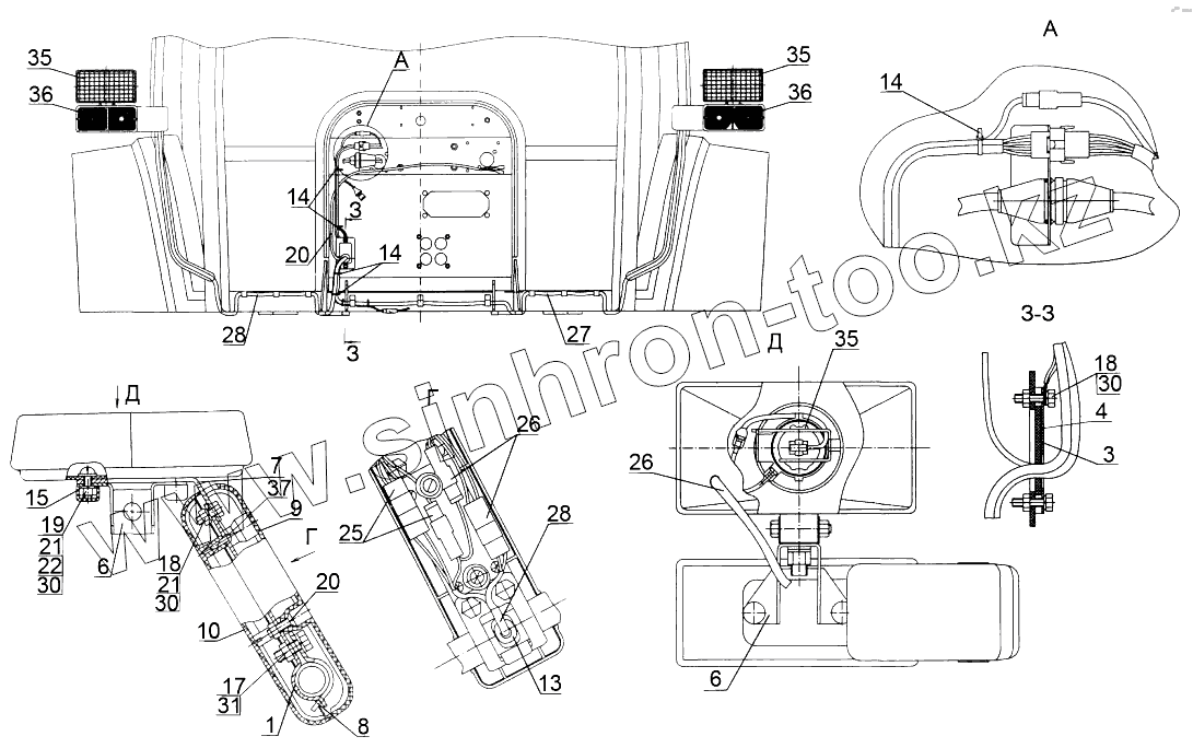 Каталог запасных частей к технике: МТЗ 3022ДЦ.1. Установка фонарей передних
