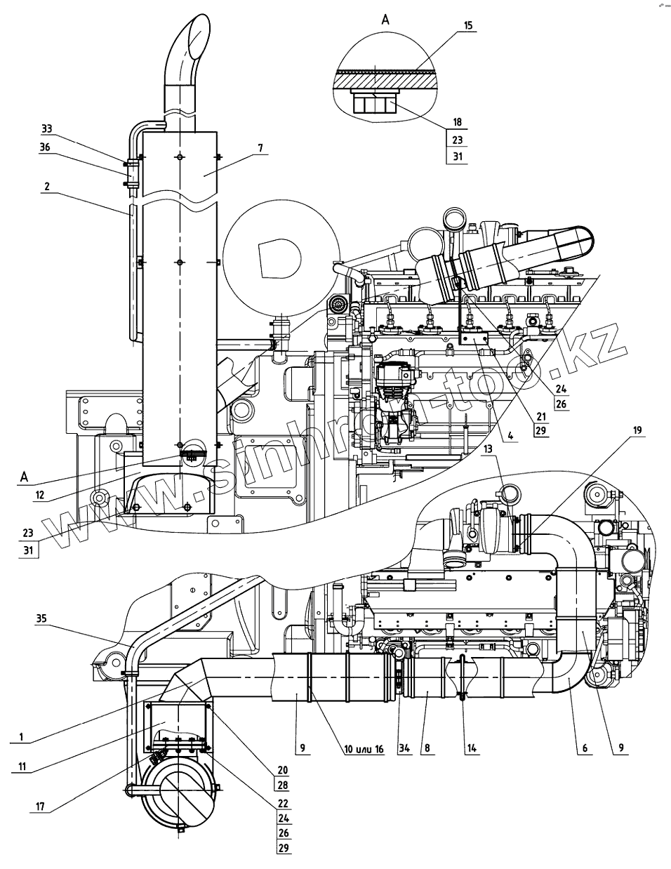 Каталог запасных частей к технике: МТЗ 3022ДЦ.1. Установка глушителя