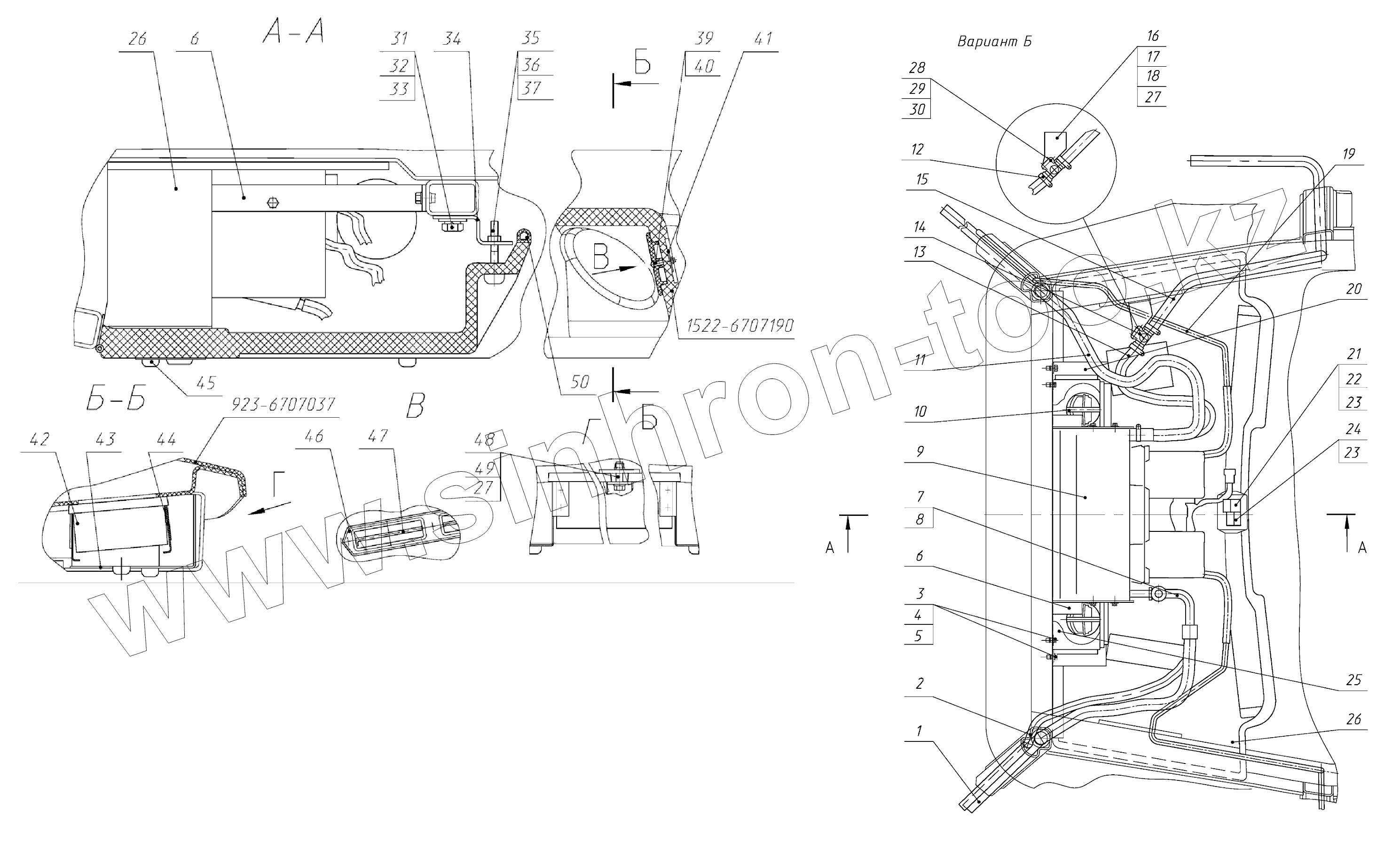 Каталог запасных частей к технике: МТЗ 3022ДЦ.1. Установка отопителя-охладителя (Вариант Б)
