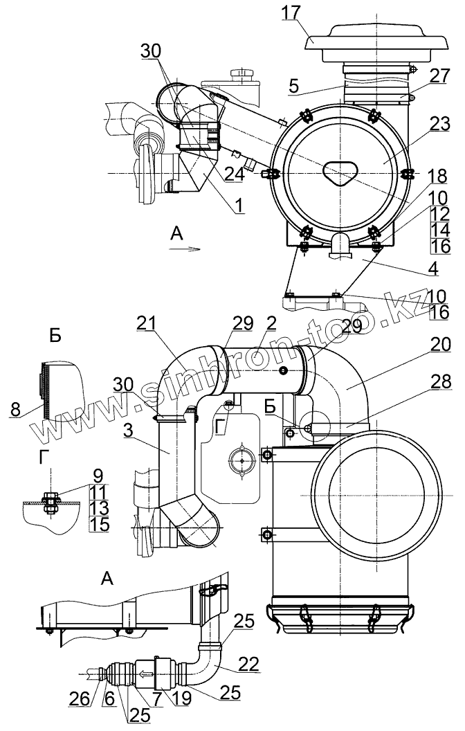 Каталог запасных частей к технике: МТЗ 3022ДЦ.1. Установка воздухоочистителя