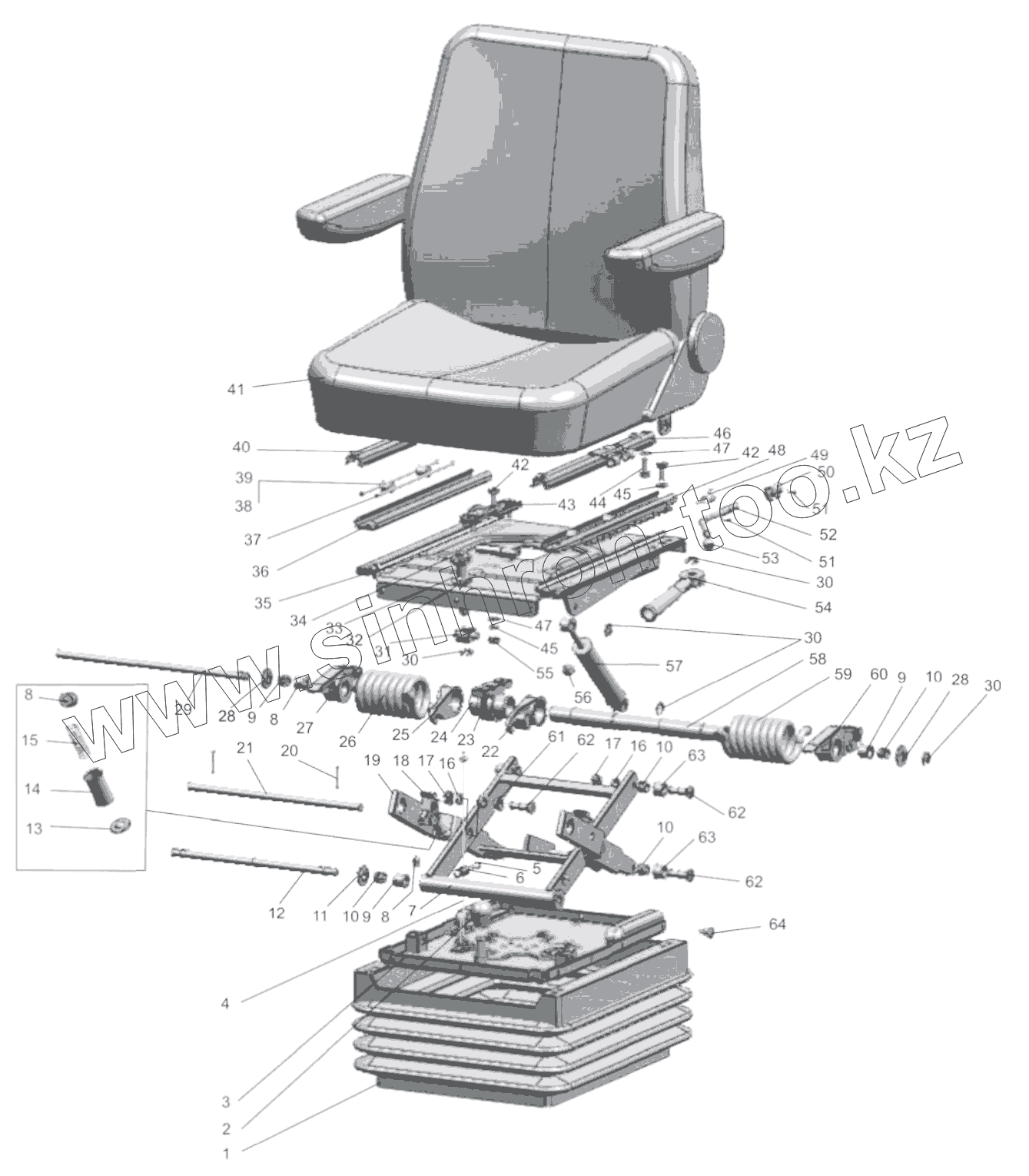 Каталог запасных частей к технике: МТЗ 320.4М. Сиденье оператора 80-6800010/80-6800010-01