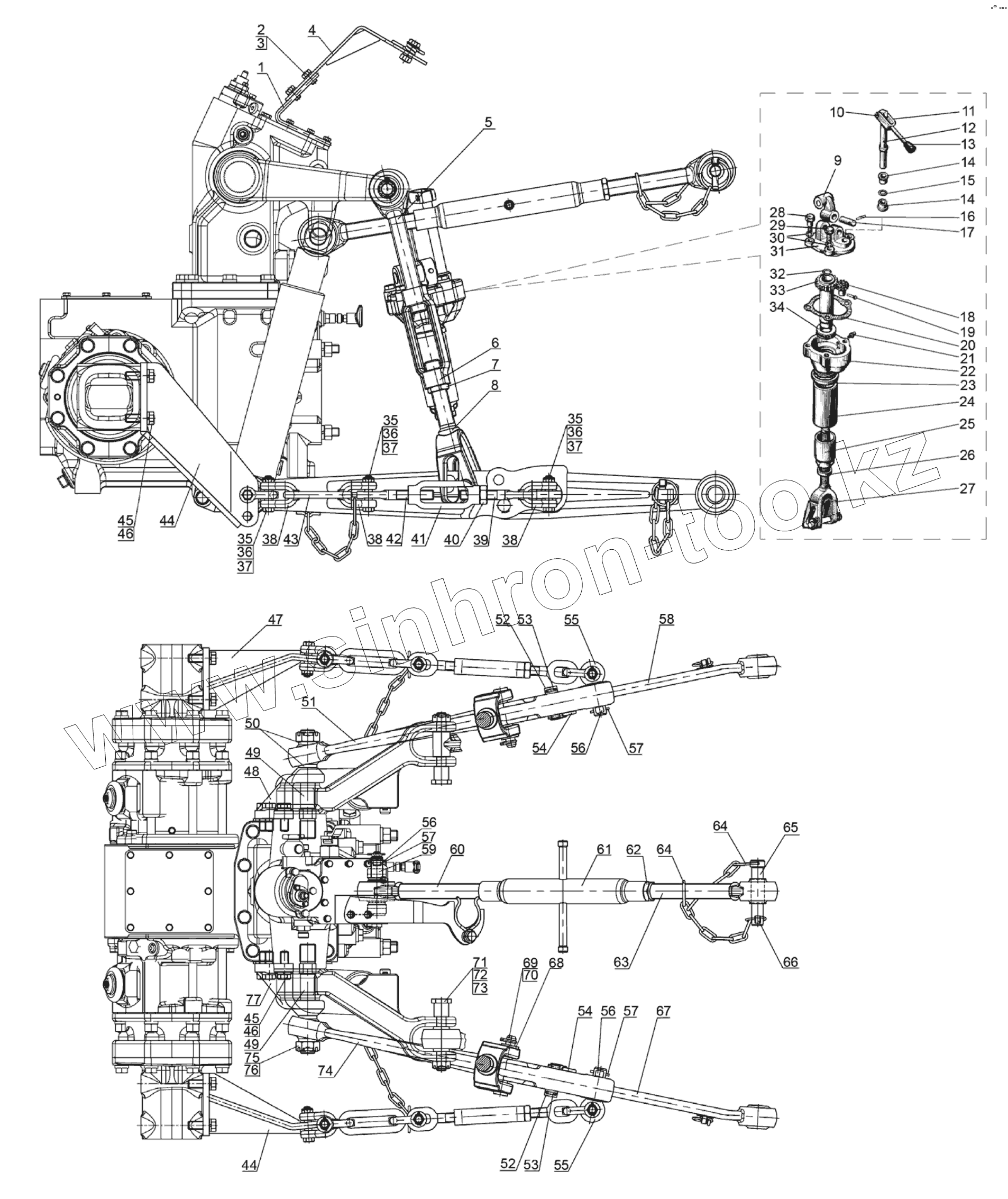 Каталог запасных частей к технике: МТЗ 622. Устройство навесное заднее
