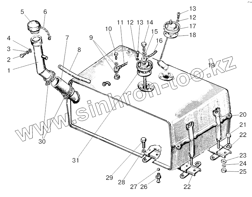 Каталог запасных частей к технике: МТЗ 800/900. Бак топливный (ГНС с гидроподъемником)