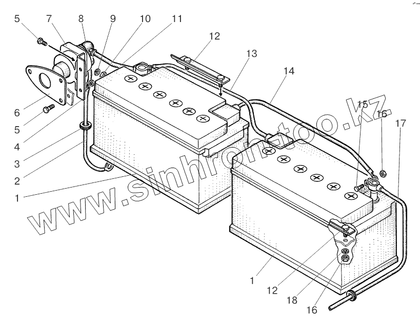 Каталог запасных частей к технике: МТЗ 800/900. Установка батарей аккумуляторных (12 В)