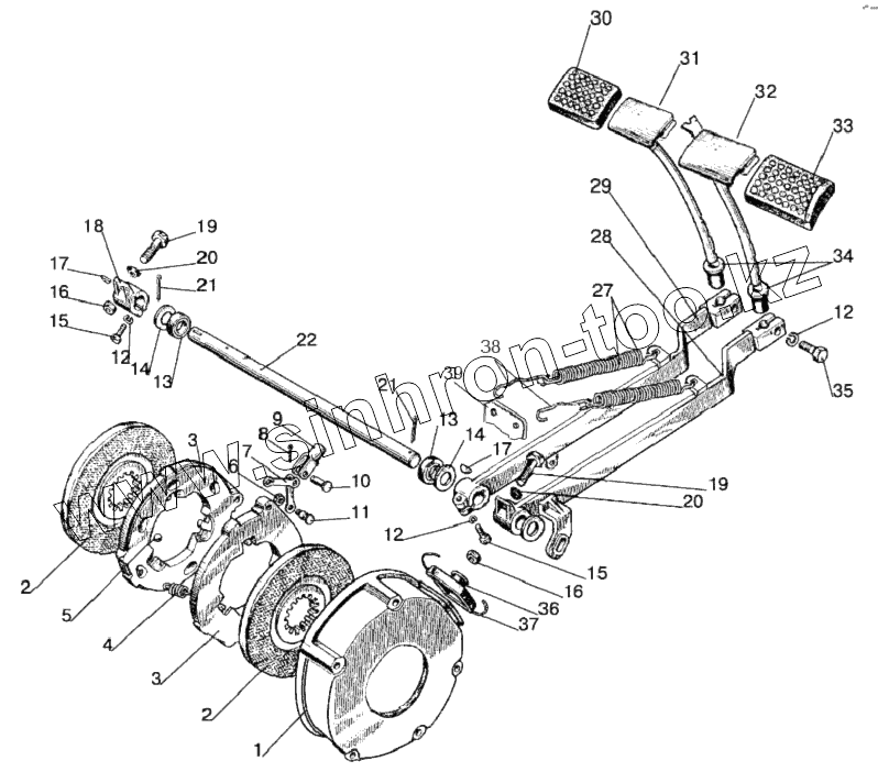 Каталог запасных частей к технике: МТЗ 80Х. Тормоза. Управление тормозами