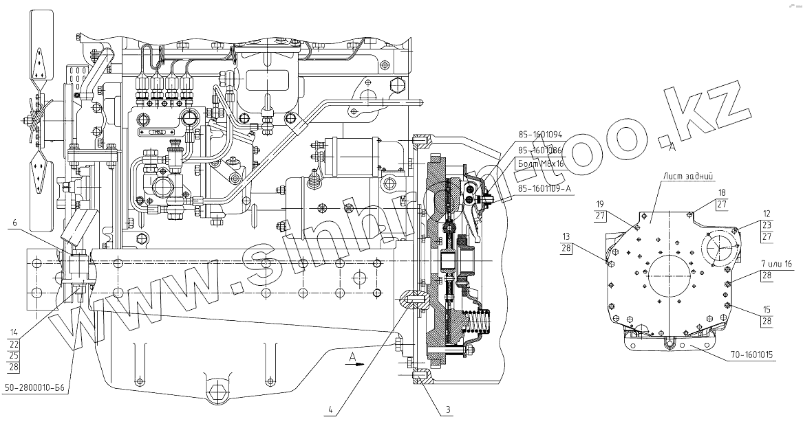 Каталог запасных частей к технике: МТЗ 80Х. Установка двигателя