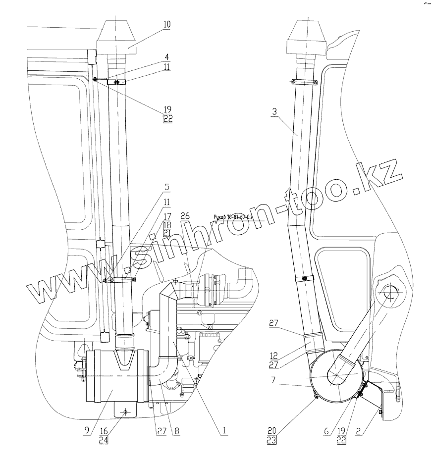 Каталог запасных частей к технике: МТЗ 80Х. Установка воздухоочистителя (для тракторов «Беларус-100Х»)