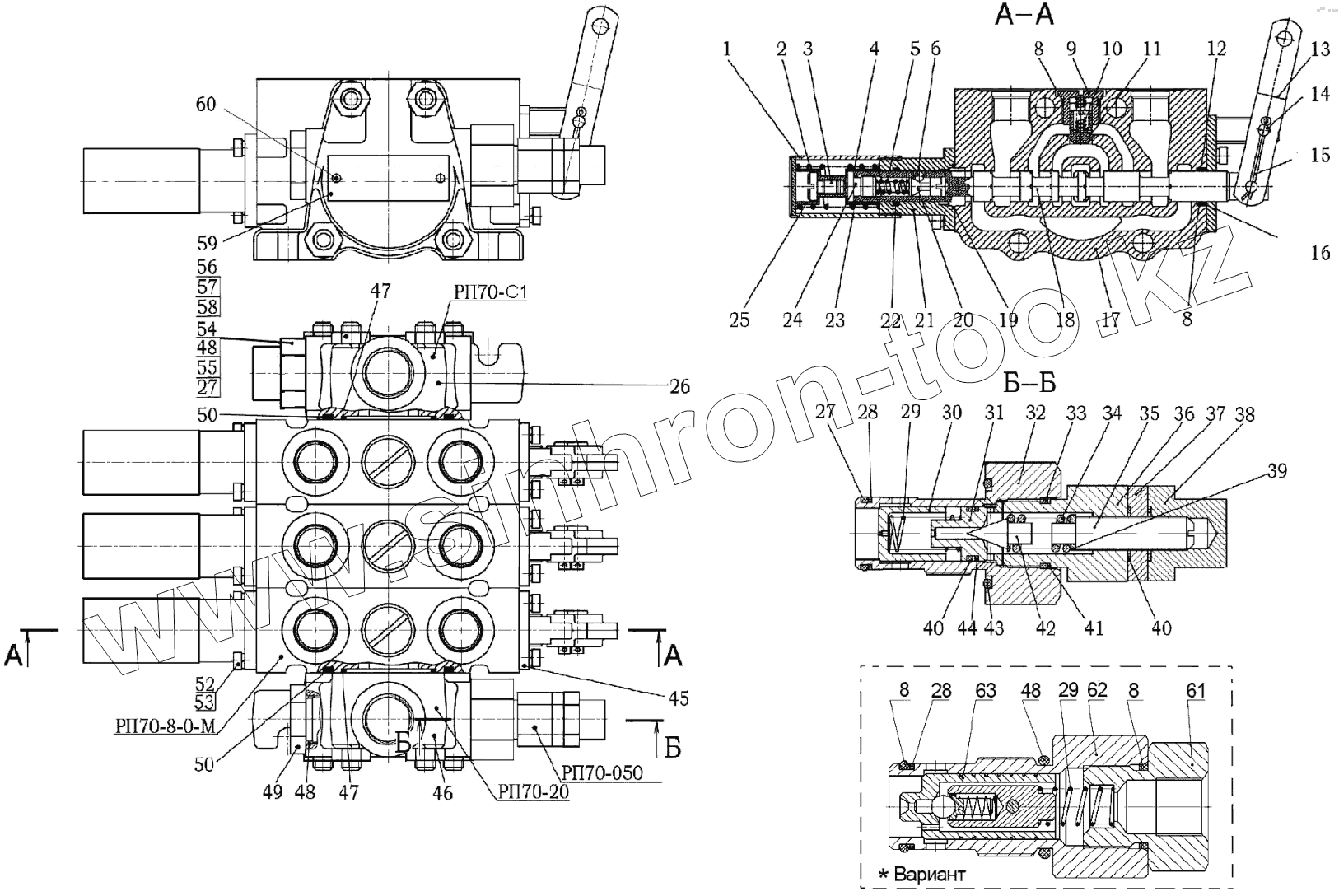 Каталог запасных частей к технике: МТЗ 892. Гидрораспределитель РП70