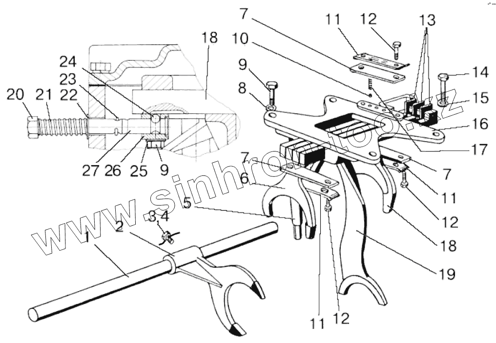 Каталог запасных частей к технике: МТЗ 892. Механизм управления механической КП. Корпус вилок