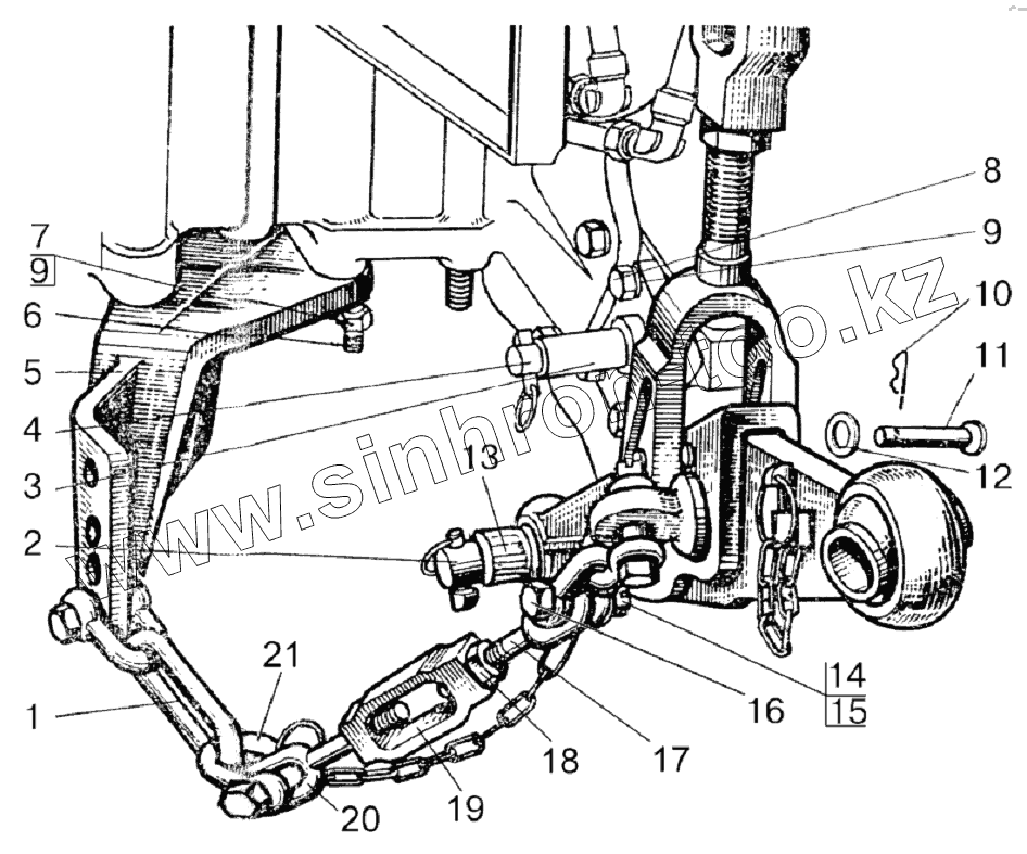 Каталог запасных частей к технике: МТЗ 892. Наружная блокировка нижних тяг