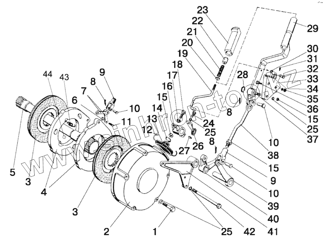 Каталог запасных частей к технике: МТЗ 892. Тормоз стояночно-запасной. Управление стояночно-запасным тормозом