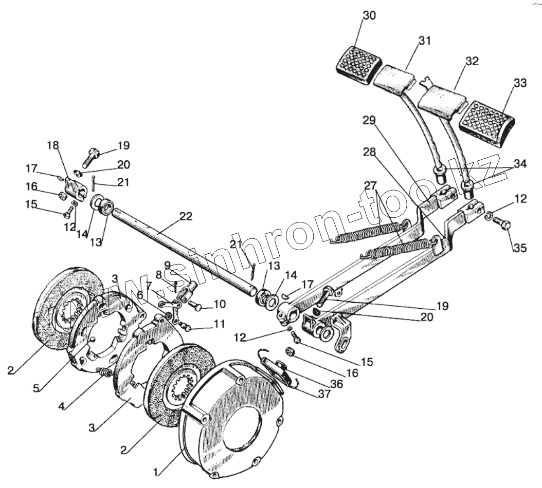 Каталог запасных частей к технике: МТЗ 892. Тормоза. Управление тормозами