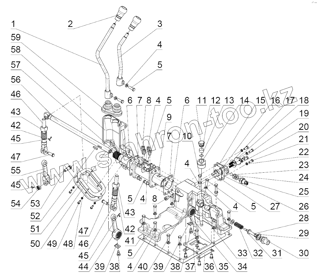 Каталог запасных частей к технике: МТЗ 922.5. Механизм 2-х рычажного управления КП