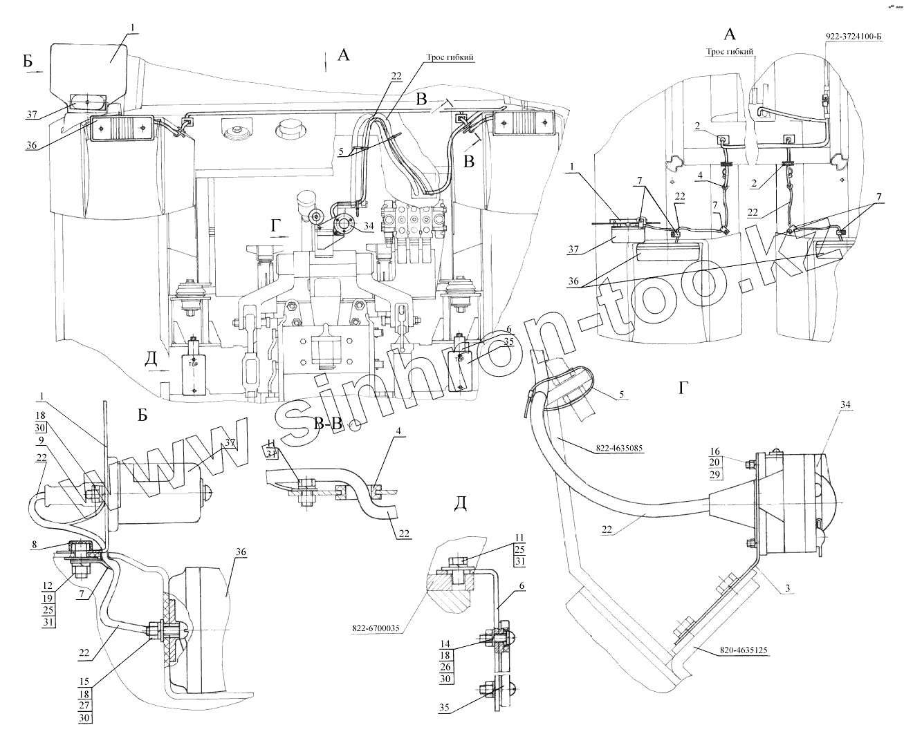 Каталог запасных частей к технике: МТЗ 922.5. Установка фонарей задних
