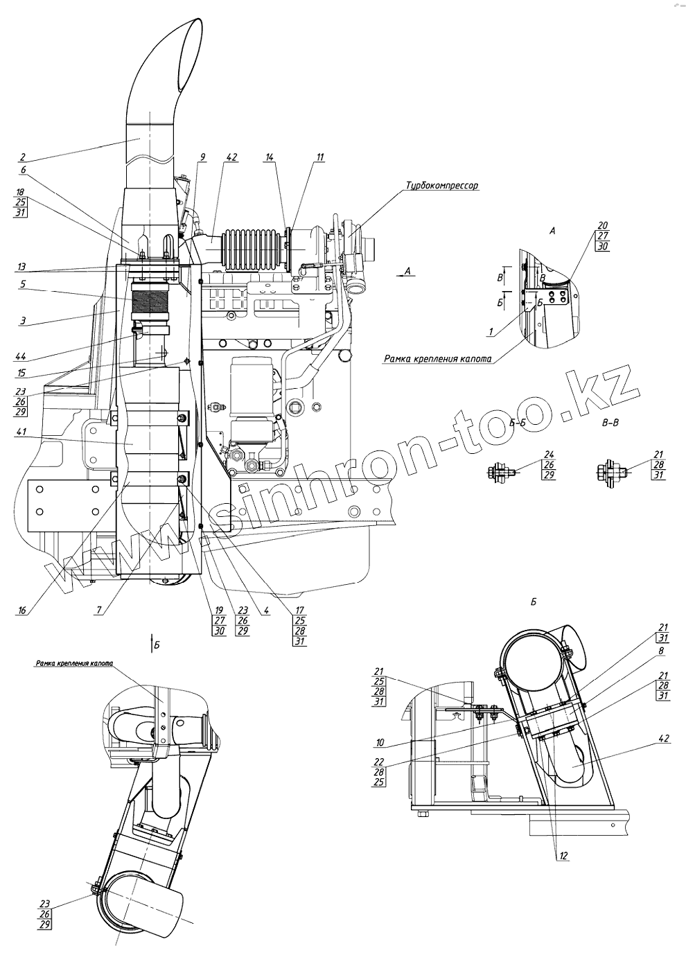 Каталог запасных частей к технике: МТЗ 922.5. Установка глушителя