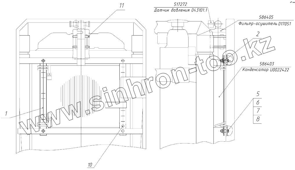 Каталог запасных частей к технике: МТЗ 922.5. Установка конденсатора 1025-8112010
