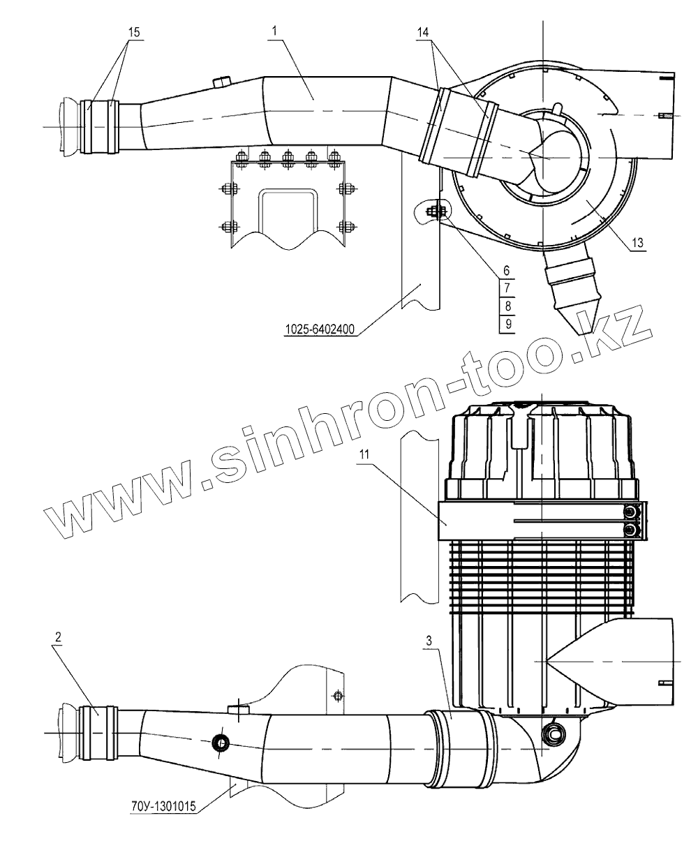 Каталог запасных частей к технике: МТЗ 922.5. Установка воздухоочистителя