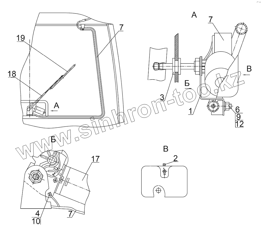 Каталог запасных частей к технике: МТЗ 923.4. Установка стеклоочистителя заднего
