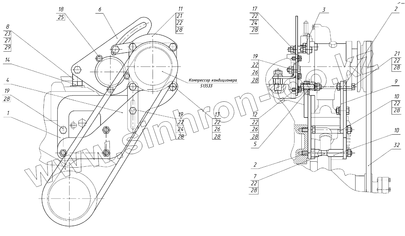 Каталог запасных частей к технике: МТЗ 923.5. Компрессор кондиционера 950-8114010