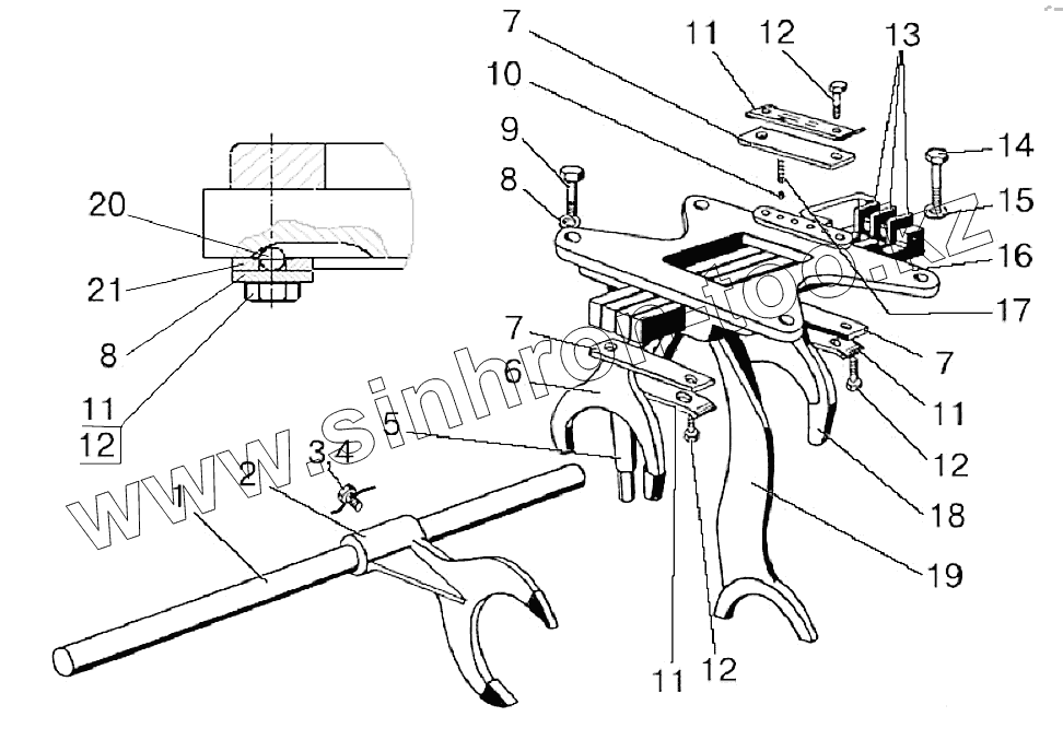 Каталог запасных частей к технике: МТЗ 92П. Механизм управления механической КП. Корпус вилок.