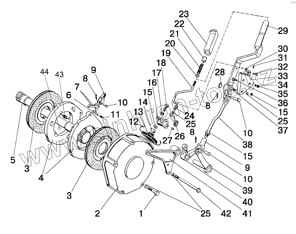 Каталог запасных частей к технике: МТЗ 92П. Тормоз стояночный. Управление стояночным тормозом