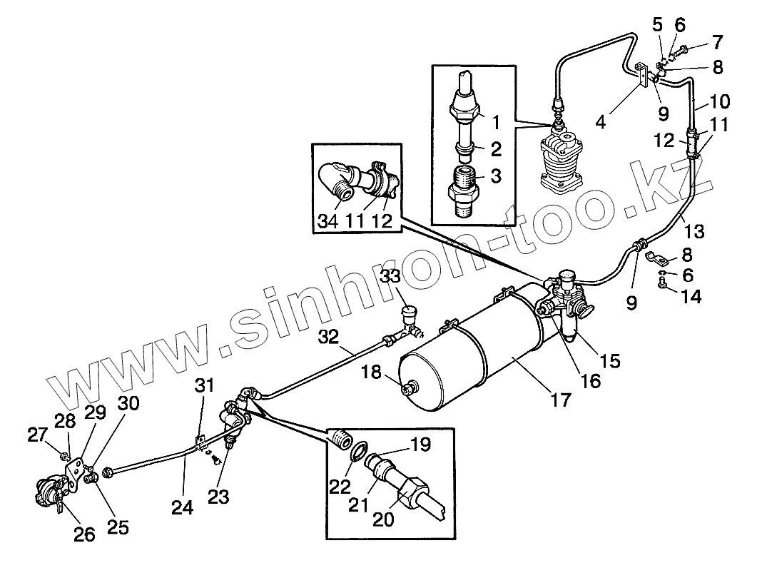 Каталог запасных частей к технике: МТЗ 92П. Трубопроводы и арматура однопроводного пневмопривода тормозов прицепа