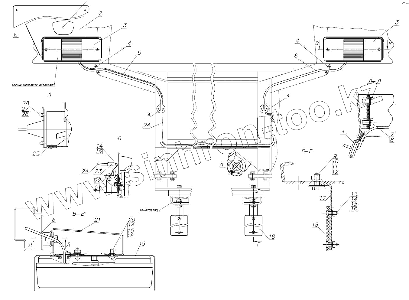Каталог запасных частей к технике: МТЗ 92П. Установка фонарей задних
