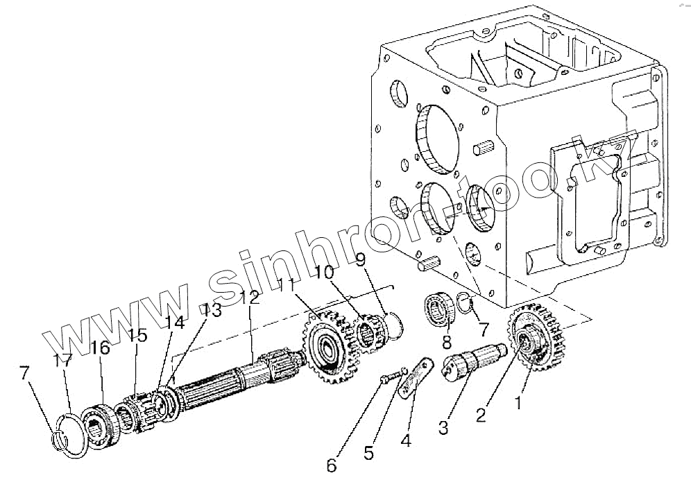 Каталог запасных частей к технике: МТЗ 92П. Вал 1-ой передачи и передачи заднего хода