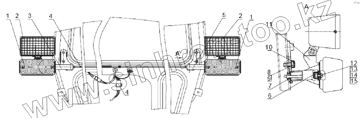Каталог запасных частей к технике: МТЗ 952.5. Установка фонарей передних с рабочими фарами
