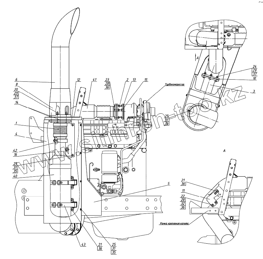 Каталог запасных частей к технике: МТЗ 952.5. Установка глушителя (1220.5-1205005)