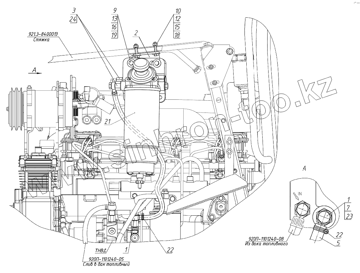 Каталог запасных частей к технике: МТЗ 952.5. Установка топливного фильтра