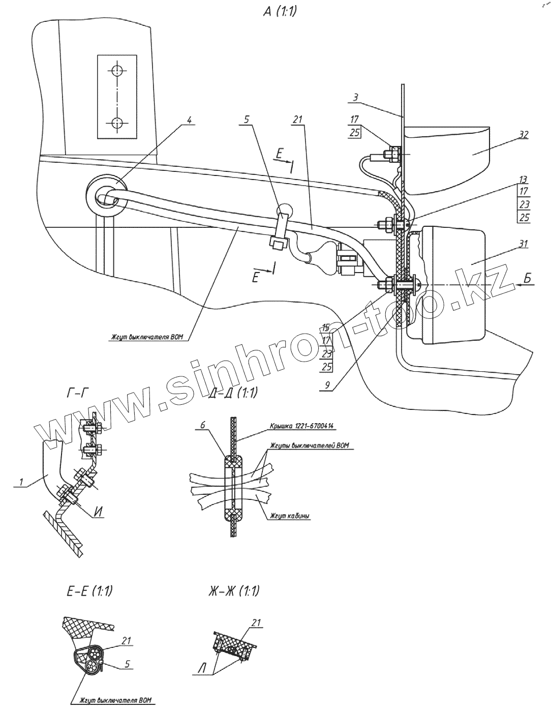 Управление задним навесным устройством. Установка выключателей ВОМ 1221-8702610