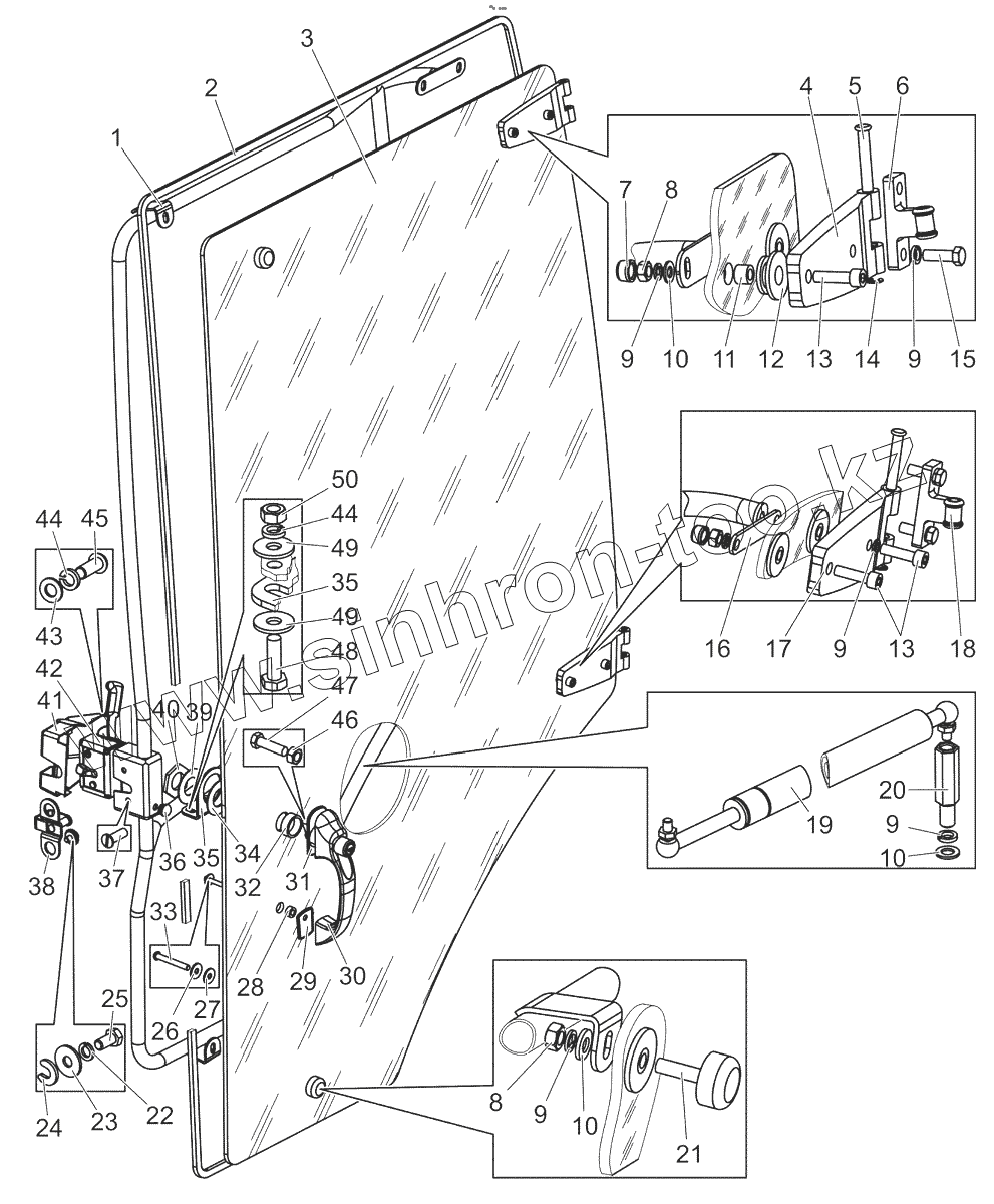 Каталог запасных частей к технике: МТЗ БЕЛАРУС 2103. Дверь левая. Стекло. Запорное устройство