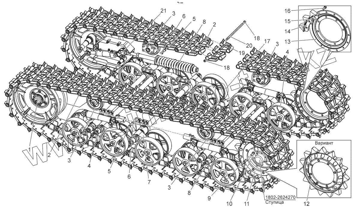 Каталог запасных частей к технике: МТЗ БЕЛАРУС 2103. Движитель гусеничный. Гусеница. Колесо секторное