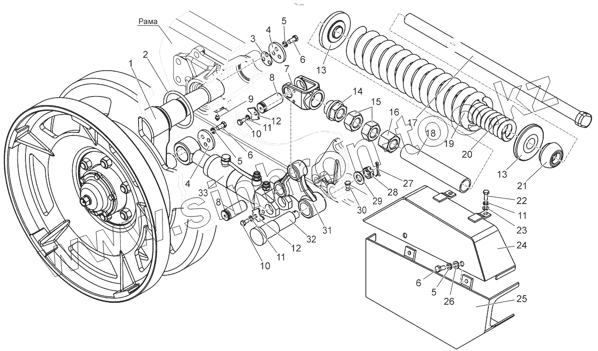 Каталог запасных частей к технике: МТЗ БЕЛАРУС 2103. Механизм натяжения гусеницы. Амортизатор. Кожух