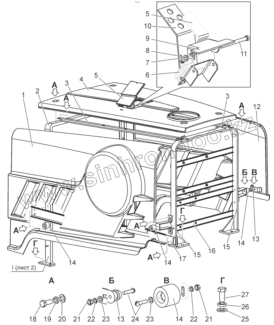 Каталог запасных частей к технике: МТЗ БЕЛАРУС 2103. Облицовка. Капот