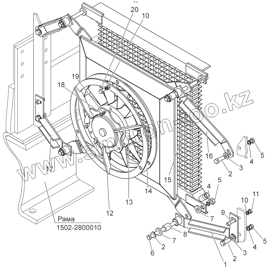 Устройство навесное. Винт. Тяга верхняя. Тяга правая. Тяга левая. Раскос. Устройство тягово-сцепное. Тяга