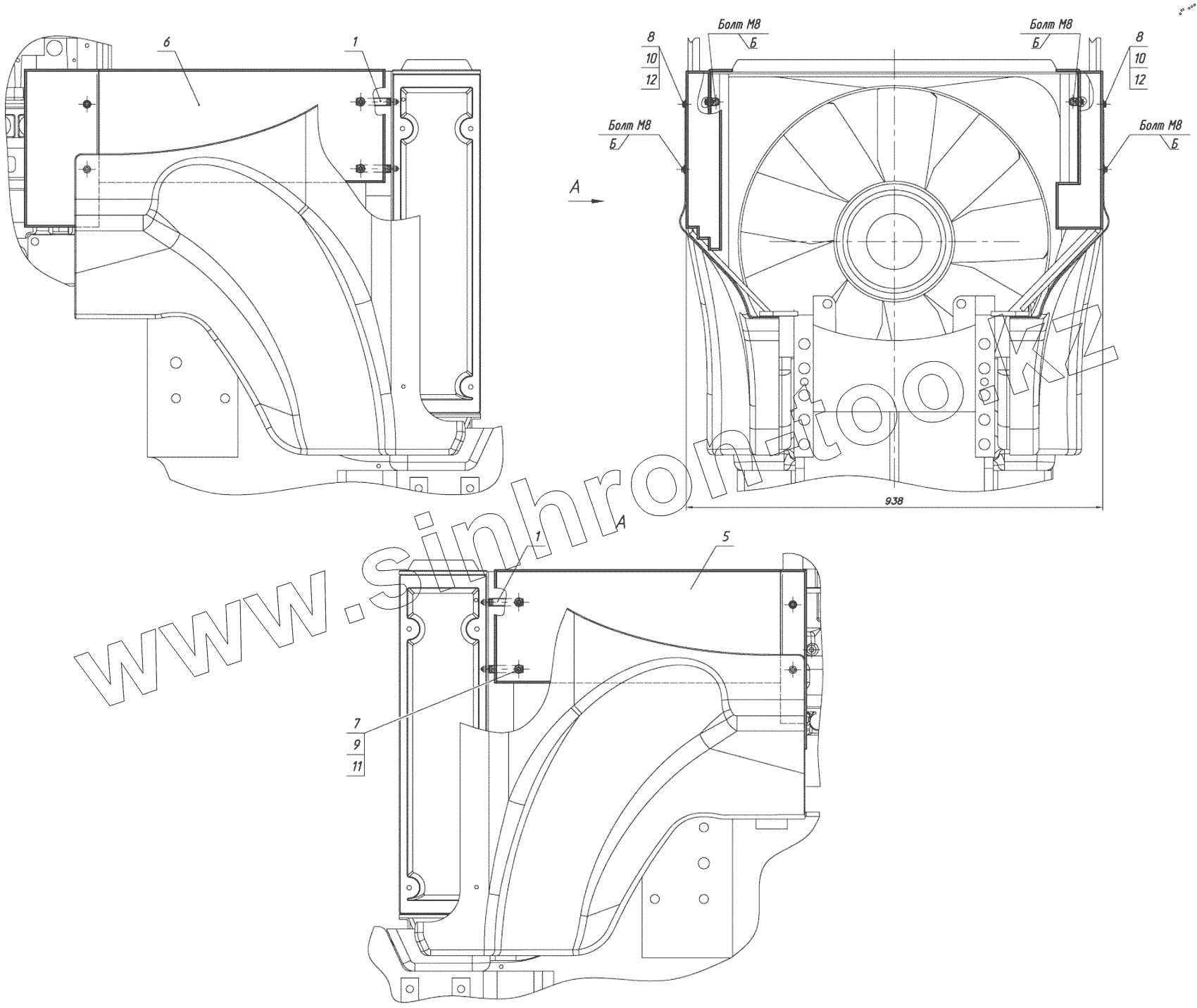 Каталог запасных частей к технике: МТЗ БЕЛАРУС 3525. Ограждение вентилятора 3522С-1309100