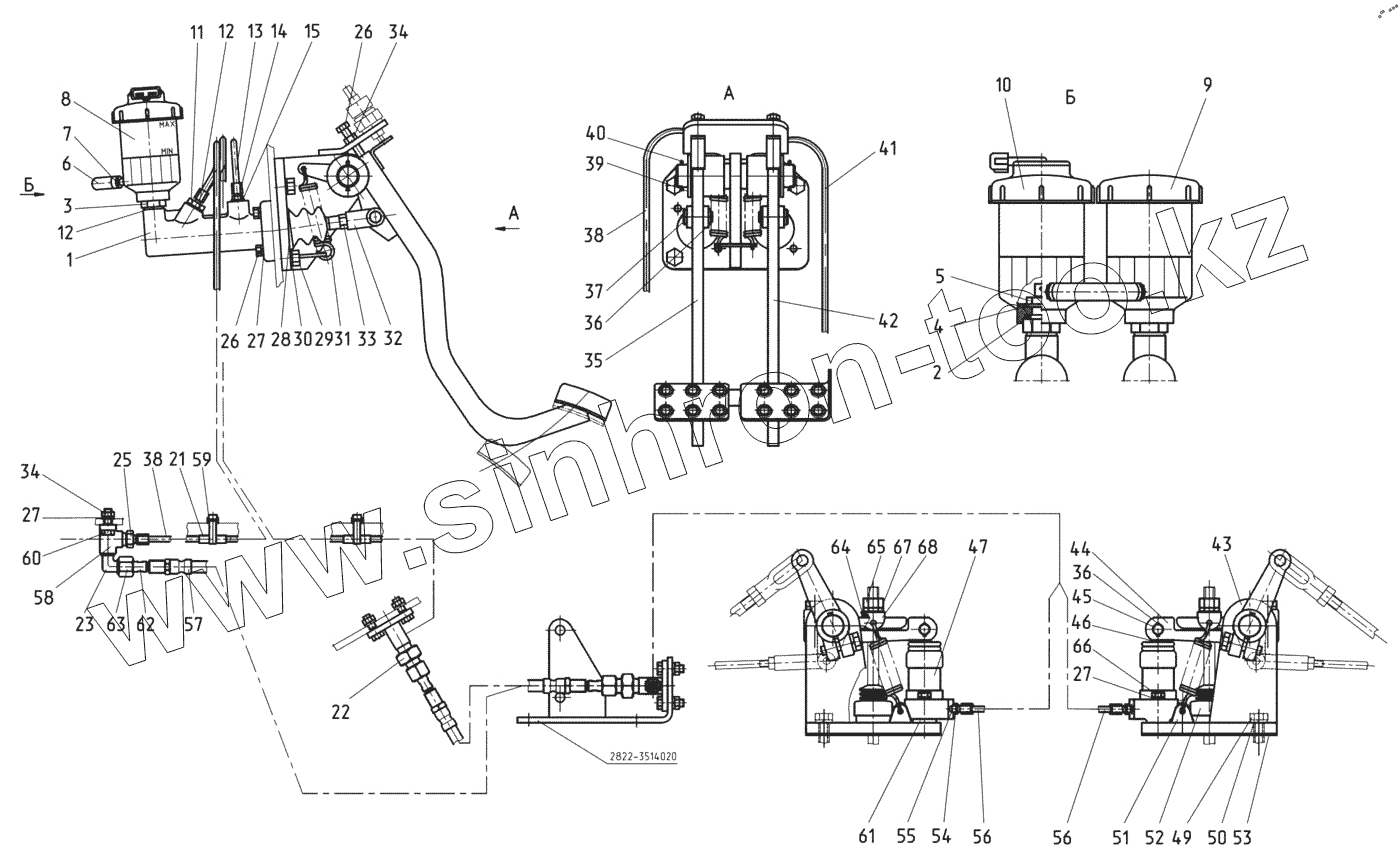 Каталог запасных частей к технике: МТЗ БЕЛАРУС 3525. Управление тормозами 2822-3503700-01
