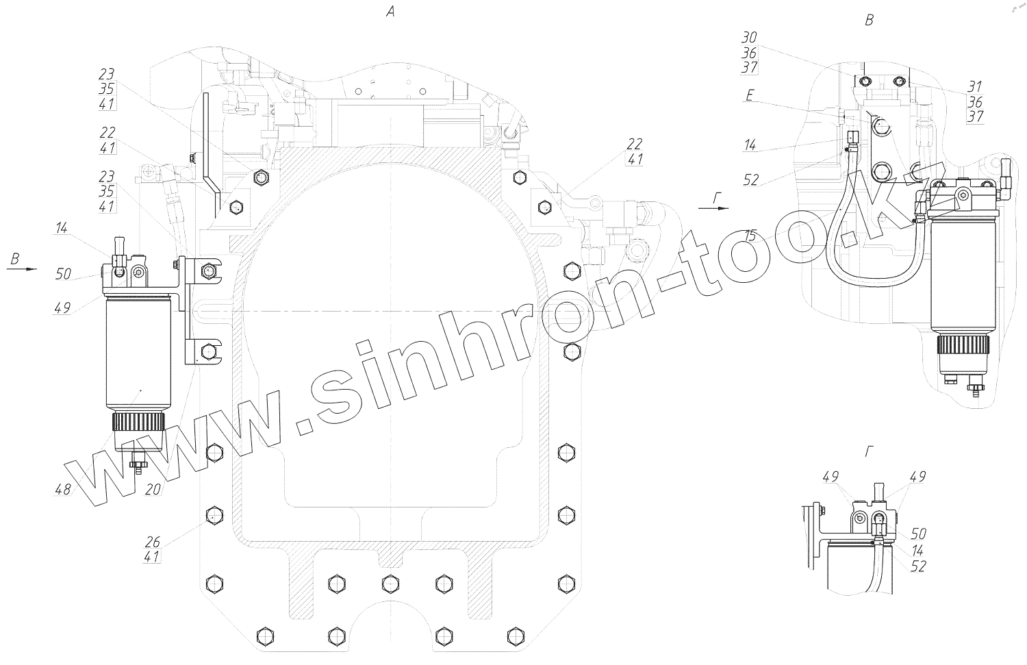 Каталог запасных частей к технике: МТЗ БЕЛАРУС 3525. Установка двигателя 3522С-1001001